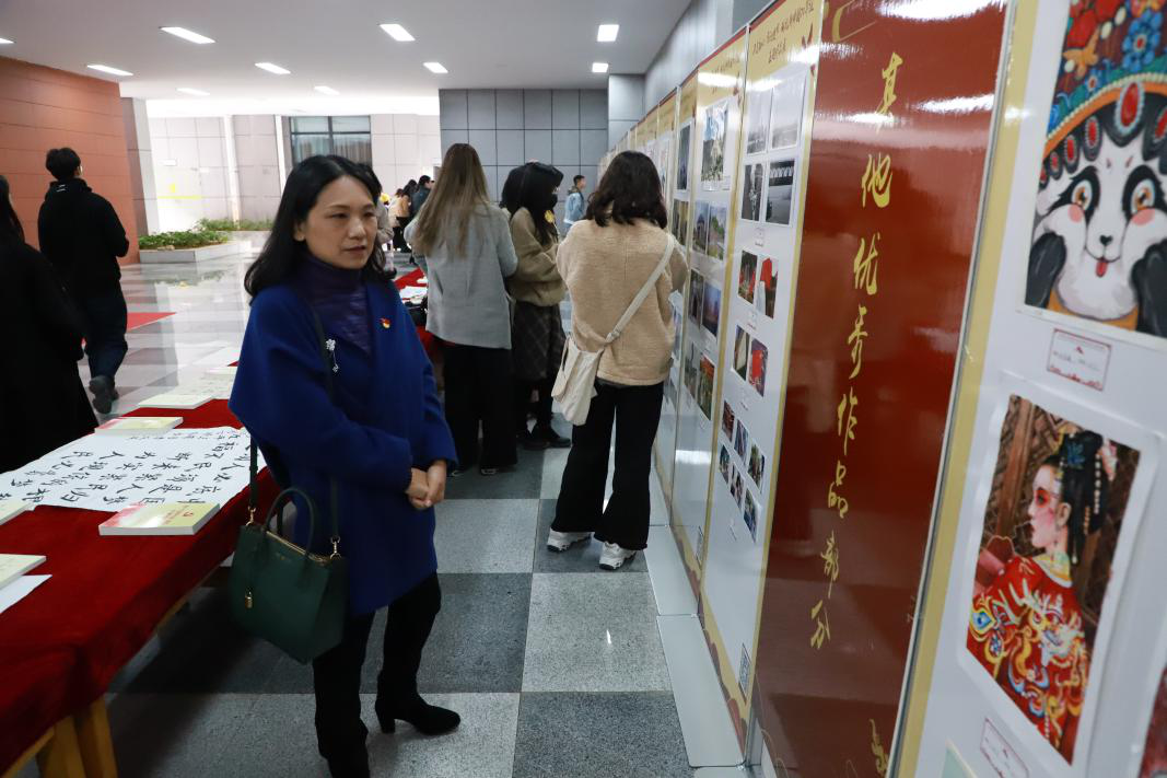 郭秀蓉致开幕词,她表示,主题作品展是艺媒学子用属于艺媒人的独特方式,通过绘画设计、摄影摄像、艺术表演等形式,向伟大祖国献上的真挚祝福,也是公司党委在全院师生中深入开展“不忘初心 牢记使命”主题教育的创新探索。本次主题展也是学校给艺媒学子提供的一个很好的展示成果和学习交流平台。郭秀蓉最后对全院师生提出期望:学院将认真学习贯彻中央关于美育工作的精神指示,抓好专业教学,加强团队建设,浓厚美育氛围,整合更多资源推进学校美育工作,希望全体艺媒学子扎根时代生活,勇肩时代使命,在艺术创作中实现人生价值,为学校早日建成地球科学领域世界一流大学汇聚磅礴力量。