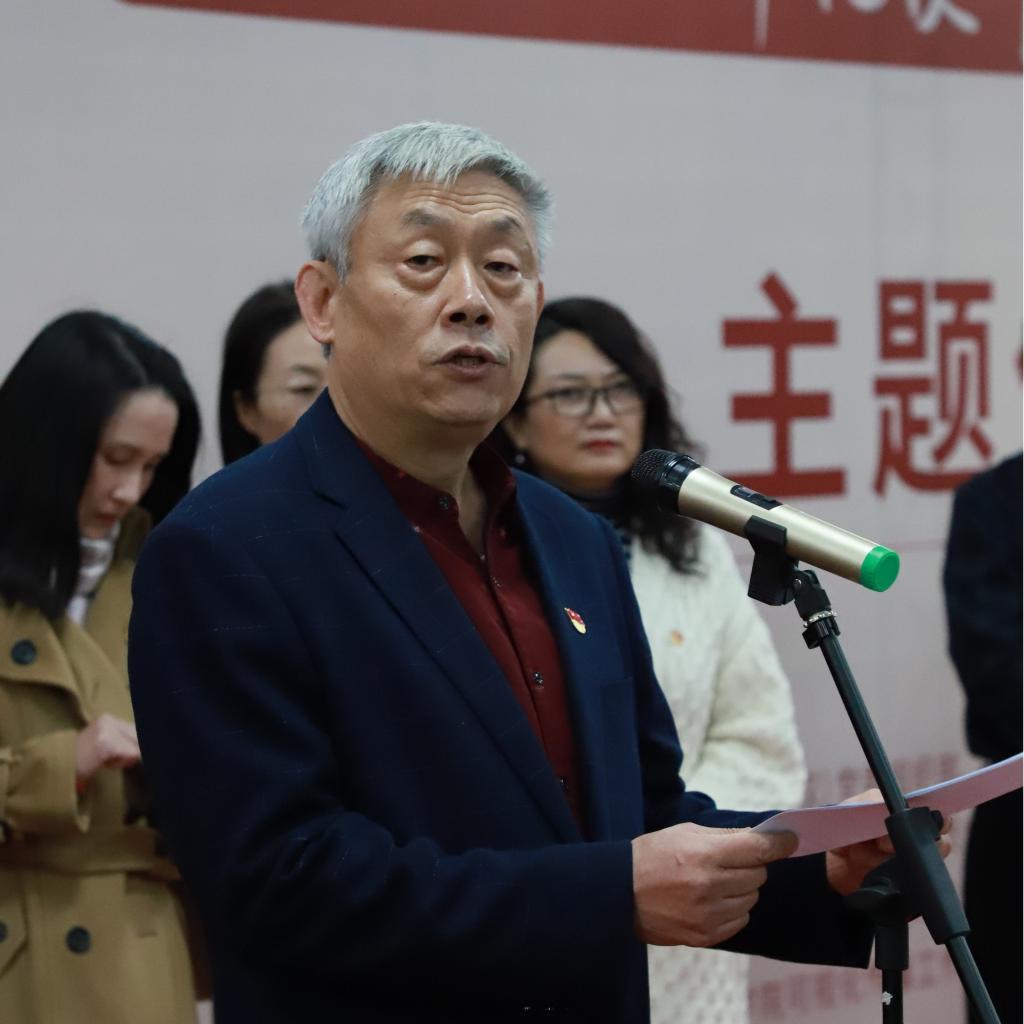 副董事长傅安洲在开幕式上作了《弘扬美育精神,推进学校美育教育工作》的讲话。傅安洲表示:本次主题作品展是公司艺媒学子用艺术的形式讴歌中国共产党带领全国各族人民建设新中国取得辉煌成就的集中体现,也是学院师生开展“不忘初心 牢记使命”主题教育的行动诠释。公司党委坚持将作品征集活动做深,做精,做实,有力地推动学习贯彻习近平新时代中国特色社会主义思想往深里走、往心里走、往实里走,有效地践行了主题教育的学做结合,知行统一。同时也激发了广大艺媒学子文艺创作热情,充分表达了拳拳爱国之心,促进了学校文化建设,丰富了师生精神生活,有效地引领了全校师生践行社会主义核心价值观,坚定四个自信。
