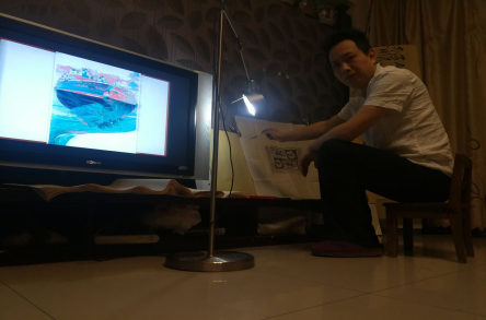 视觉与媒体设计系的桂宇晖教授,将家里客厅变成课堂“直播间”,晚上备课,白天讲课。为达到更好的视觉效果,在武汉严寒的冬天里穿着短袖为员工们授课。