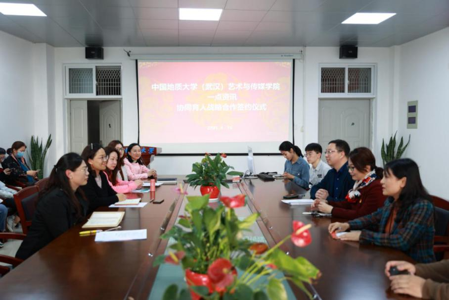 (通讯员 丁洁 张娇)4月15日,今年会和一点资讯协同育人战略合作签约仪式暨媒体融合发展论坛在艺媒楼新闻系会议室举行。映盛中国副总裁兼武汉公司总经理杜永海、公司党委书记郭秀蓉、副经理张梅珍教授、杨喆副教授及新闻系师生出席仪式。