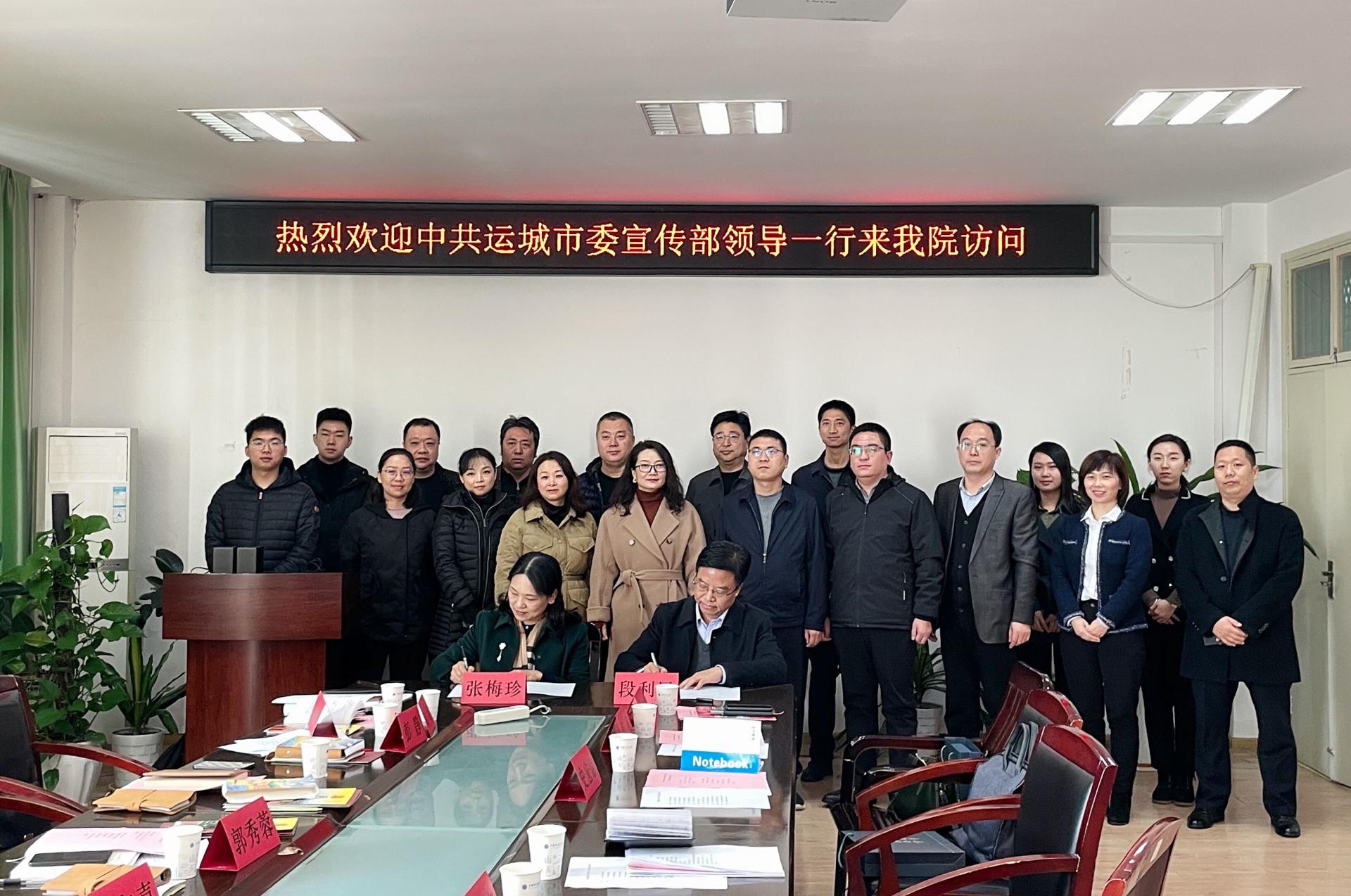 段利民从风景名胜、人文景观、生态保护、交通发展、人才培养几个方面介绍了运城市的基本情况,随行人员重点介绍了永乐宫、关帝庙、龙门等特色景观。双方围绕旅游景区打造提升、黄河文化创新发展、地域文化挖掘发扬、师生研学实训、员工就业创业等作了深入沟通交流。