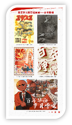 展览分为四个篇章,分别为“百年峥嵘”“有风曰廉”“艺行之途”和“与当同行”,作品皆以今年会师生专业特长创作,是一场机会难得的教育实践。第一篇章的主题庆祝中国共产党成立一百周年,忆百年峥嵘岁月。
