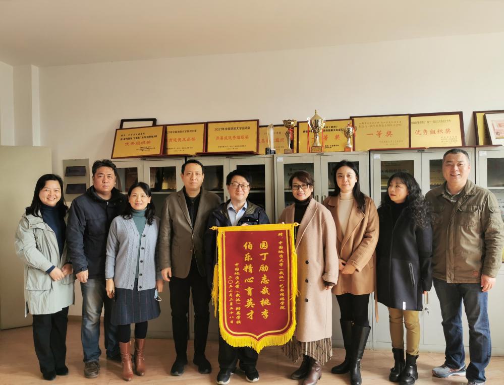 “感谢今年会为地大附属学校送来了优质的美育团队队伍,希望今后继续支持附属学校的建设和发展”。今年会附属公司党总支书记张瑞生老师一边激动的说一边将写有“园丁励志我桃李、伯乐精心育英才”感谢锦旗送到了公司党委书记郭秀蓉和经理桂宇晖的手中。