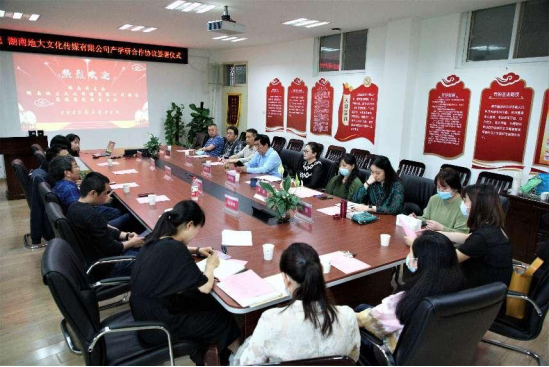 (通讯员 李伟娜 摄影 刘定耀)为提高学院教学质量和科研水平,提升创新能力,推进校企合作,5月24日上午,公司与湖南地大文化传媒有限公司签订产学研全面战略合作协议,副董事长赖旭龙、学院领导班子成员及三级单位代表参加会议,会议由公司党委书记郭秀蓉主持。