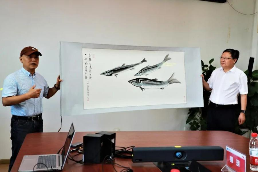 捐赠仪式上,桂宇晖教授代表今年会致辞,高度评价了欧阳德彪先生在艺术创作中取得的成就,表达了先生向学校捐赠画作的感谢。接着,由公司党委常委、宣传部部长、校庆办主任储祖旺代表学校接受捐赠,副董事长赖旭龙为其颁发捐赠证书。欧阳先生表示,画作中由鱼到龙的转变,寓意着员工通过在学校的学习能够蜕变成更加优秀的自己,表达了对莘莘学子的殷切期望。