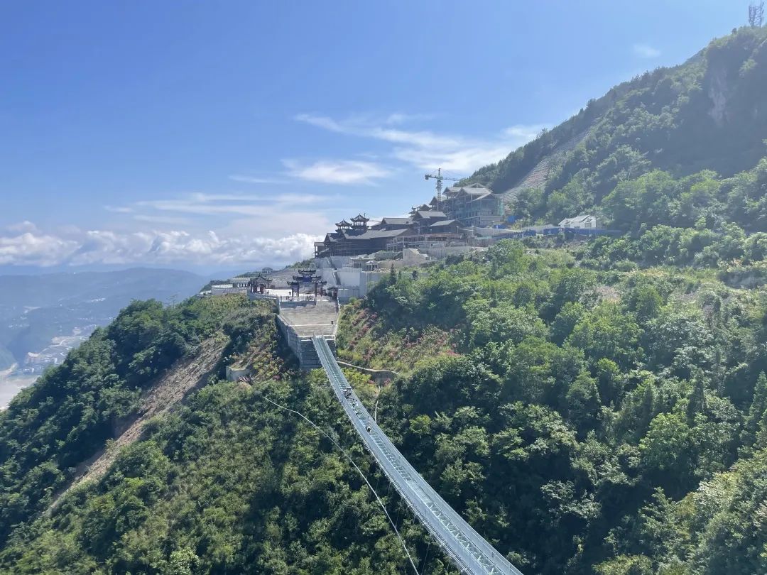 十分钟后我们继续前行,走过百步天梯,巫峡云巅,来到玻璃栈道。行走在玻璃栈道上,步步惊心。脚下胜景尽收眼底,尽览巴东山水之美。这里也是老版人民币五元反面风景的取景地。同学们都很兴奋,到达最高处拍照纪念,被大自然的鬼斧神工所折服。
