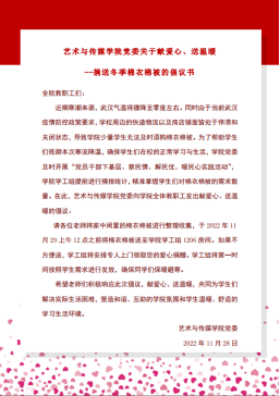 28日晚上和29日上午,学院老师在看到倡议书后,积极响应,纷纷在群里回应,部分老师即使被封控在家,还是表达了解封后马上送衣物来的想法。29日上午,党委副书记边建华驱车带领辅导员单湉艺、陈习良、曾戈晖去校外两个售卖店采购棉被10件。截至中午,共收到老师们捐赠的羽绒服、外套、毛衣毛裤等共18件,棉被6件。下午2点至4点,公司党委书记郭秀蓉、党委副书记边建华和全体专兼职辅导员一起,深入到员工宿舍,为大家送去过冬的棉衣棉被,在寒冷冬日里送去了公司党委和全体教职工的爱心和温暖。同学们纷纷表达了对学院和老师们的感激之情。