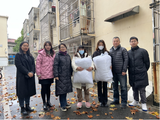 近期寒潮来袭,武汉气温将骤降至零度左右。为深入掌握员工思想动态、了解员工学习和生活中存在的困难,公司党委按照党员干部“下基层、察民情、解民忧、暖民心”工作要求,党委书记郭秀蓉带队,党委副书记边建华以及学工组全体专兼职辅导员在11月28日晚走访全体员工宿舍,走访过程中有部分同学反映:由于当前武汉疫情防控政策要求,学校周边的快递物流以及商店铺面皆处于停滞和关闭状态,导致他们无法及时收到家中寄来的和网上购买的棉衣棉被。了解到同学们的实际困难后,学工组及时进行摸排统计,精准掌握同学们对棉衣棉被的需求数量。公司党委第一时间面向全体教职工发出献爱心、送温暖的倡议,动员老师们将家中闲置的棉衣棉被进行整理收集,捐送给同学们用以保暖避寒。