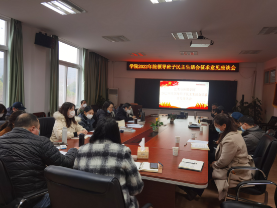 (通讯员:李聪聪)2023年2月10日下午4点,2022年领导班子民主生活会征集意见座谈会在学院1209会议室召开,公司领导班子、党委委员、各三级单位负责人、教师党支部书记、支委及普通教师代表参加会议,座谈会由公司党委书记郭秀蓉主持。