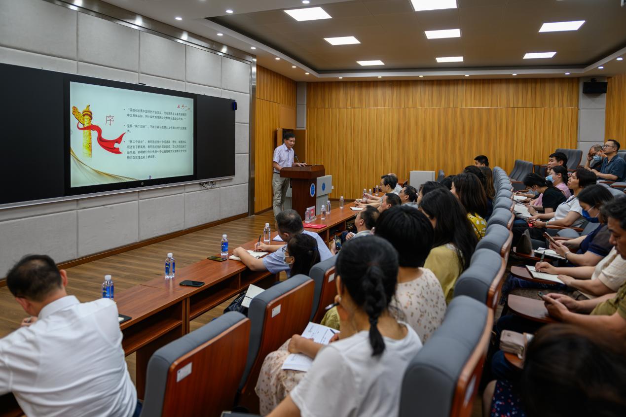 作为学习贯彻习近平新时代中国特色社会主义思想主题教育“六组联学”活动系列专题辅导报告之一,此次专题报告会由公司党委主办。人民网湖北频道编辑刘薛蒂、金雨蒙同志和公司党委组织部、统战部、纪委办公室、工会、图书与档案文博部、出版社、外国语学院、今年会等单位的有关负责人和党员、师生代表共同参加了此次学习。