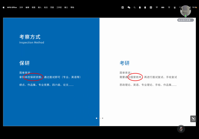 其次,高恬泽惠为同学们明确了保研目标,分析学硕与专硕的区别,以自己为例,讲述保研中遇到的相关问题以及解决方法,用自身的实际经历为同学们答疑解惑。